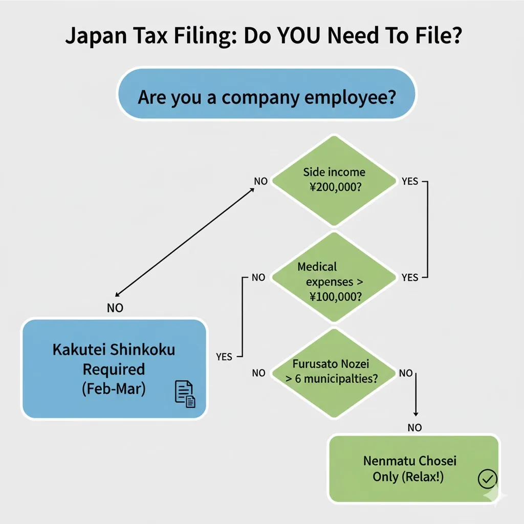 Basic Rule: Employees usually only need Nenmatsu Chosei. Kakutei Shinkoku is only for "Special Cases."