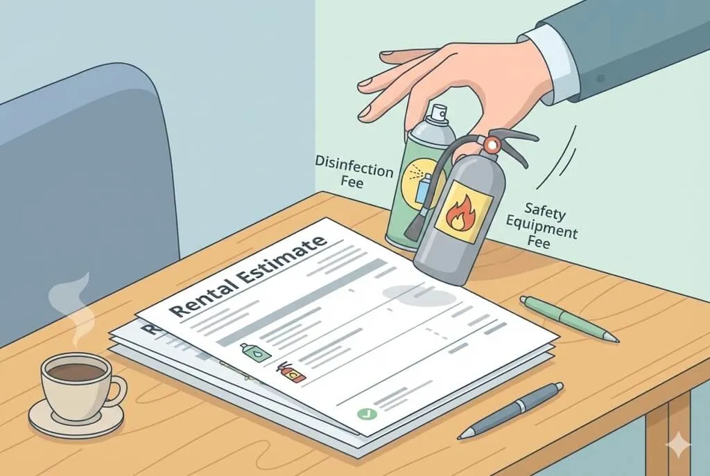 | Disinfection Fee (Shoshu-Kokin) | ¥15,000 - ¥20,000 | "Is this optional? Please remove it." (Kore wa nini option desu yone? Fuyo nanode hazushite kudasai.) |